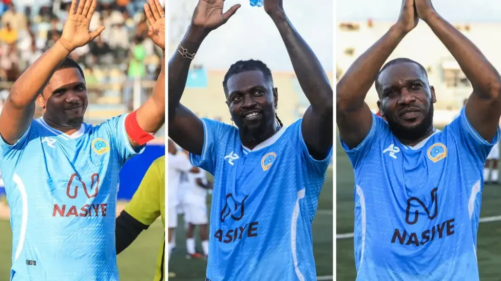 Emmanuel Adebayor, Samuel Eto'o, and Jay Jay Okocha, three African football icons, went to the Somali capital this week to play in an exhibition match that players and authorities believe would help open the door for the continent's best players to return frequently.